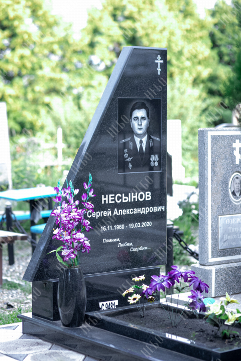 Для изготовления памятника использован гранит карельский габбро-диабаз. Это горная порода, отличающаяся прочностью и повышенной износостойкостью. Карельский габбро-диабаз устойчив к влаге и перепадам температур. Его плотность выше, чем у мрамора, поэтому именно его использовали при воздвижении вековых колонн исторических зданий. Гранитный памятник габбро-диабаз не требует особого ухода, обладает насыщенным черным цветом, что делает внешний вид памятника благородным и лаконичным.