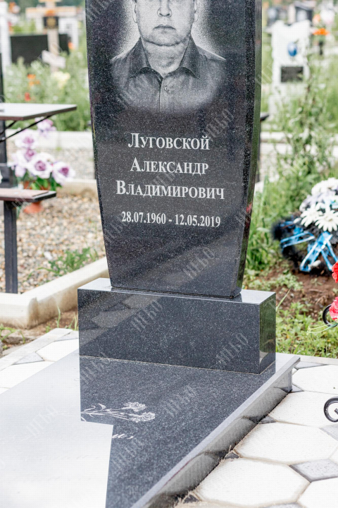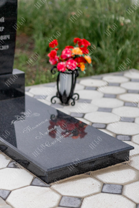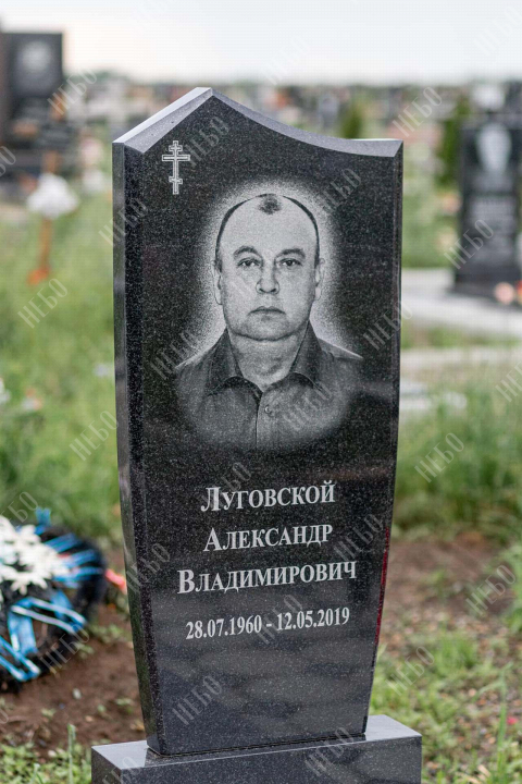 Христианский памятник с вертикальной стелой и закрытым надгробием. Гранитная стела ритуального изделия имеет фигурный верх и дополнительно обработанные края по контуру. Такое исполнение придает внешнему виду памятника сдержанный, но в то же время оригинальный вид. Размер и форма памятника проработаны экспертами с учетом нагрузки и эстетического восприятия ритуального изделия. Закрытое надгробие исключает появление сорняков на поверхности, а эпитафия на плите придает памятнику завершенный внешний вид.