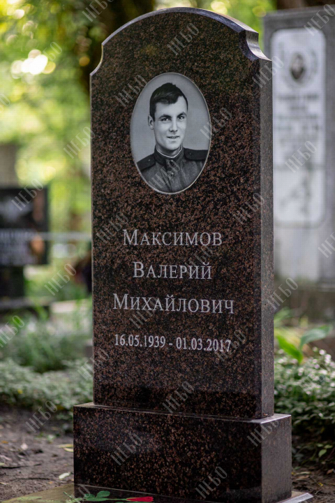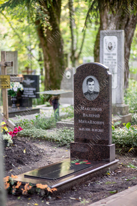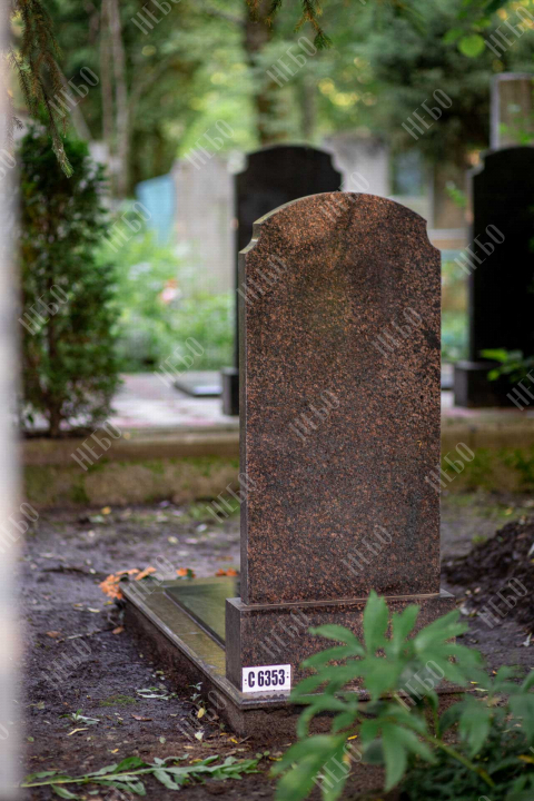 Памятник без креста с вертикальной стелой и закрытым надгробием выполнен в классических темных оттенках. Стела ритуального изделия имеет аркообразный верх и фигурные углы. Закрытое надгробие ровное, без дополнительных элементов, что значительно упрощает уход за ритуальным изделием. Размеры памятника и соотношение объемов стелы к надгробию проработаны специалистами с учетом имеющейся нагрузки и визуального восприятия. Такой подход гарантирует долговечность и исключает искажения памятника.