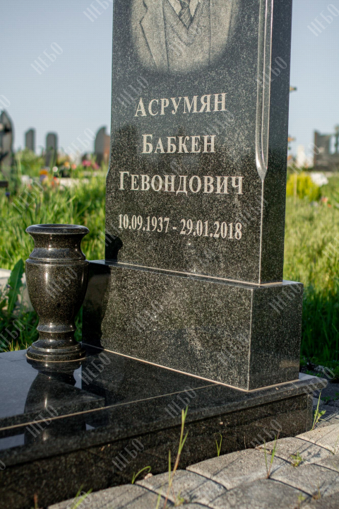 Для изготовления памятника использован гранит карельский габбро-диабаз. Это горная порода, отличающаяся прочностью и повышенной износостойкостью. Карельский габбро-диабаз устойчив к влаге и перепадам температур. Его плотность выше, чем у мрамора, поэтому именно его использовали при воздвижении вековых колонн исторических зданий. Гранитный памятник габбро-диабаз не требует особого ухода, обладает насыщенным черным цветом, что делает внешний вид памятника благородным и лаконичным.