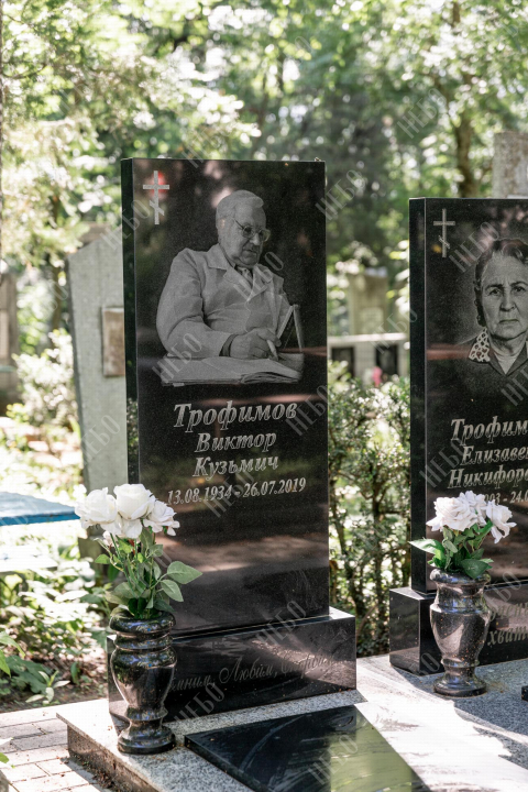 Прямой памятник для православного человека с вертикальной стелой, вазой и закрытым надгробием. Изделие выполнено в строгом лаконичном стиле с использованием четких геометрических линий. Сочетание контрастных оттенков, прямоугольные формы стелы и надгробия являются классической комбинацией, которая часто используется при изготовлении памятников. Закрытое гранитное надгробие упрощает уход за ритуальным изделием и позволяет расположить памятную надпись. Размер и форма памятника проработаны экспертами с учетом нагрузки и эстетического восприятия ритуального изделия.
