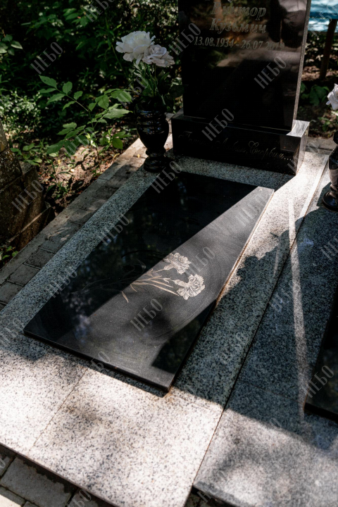Для изготовления памятника использован гранит карельский габбро-диабаз. Это горная порода, отличающаяся прочностью и повышенной износостойкостью. Карельский габбро-диабаз устойчив к влаге и перепадам температур. Его плотность выше, чем у мрамора, поэтому именно его использовали при воздвижении вековых колонн исторических зданий. Гранитный памятник габбро-диабаз не требует особого ухода, обладает насыщенным черным цветом, что делает внешний вид памятника благородным и лаконичным.